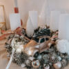 - Száraz növényekkel és üveggömbökkel díszítve