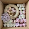 - 33 db művirág (különböző méretekben vegyesen fehér és rózsaszín/sárga)